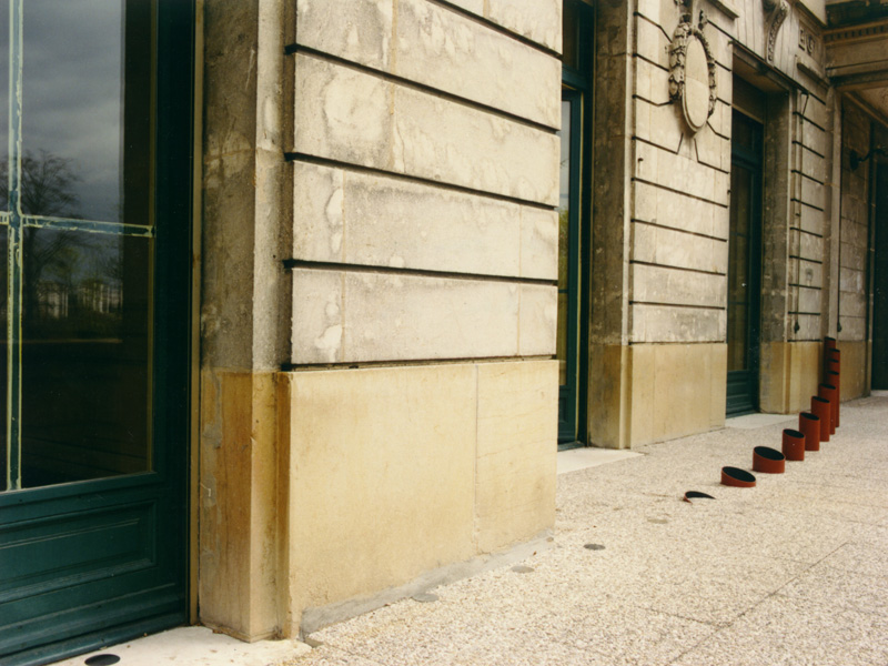 Les éléments mis en place par Pierre Gallais pour ses installations ( éphémères ou permanentes) sont de nature minimale.